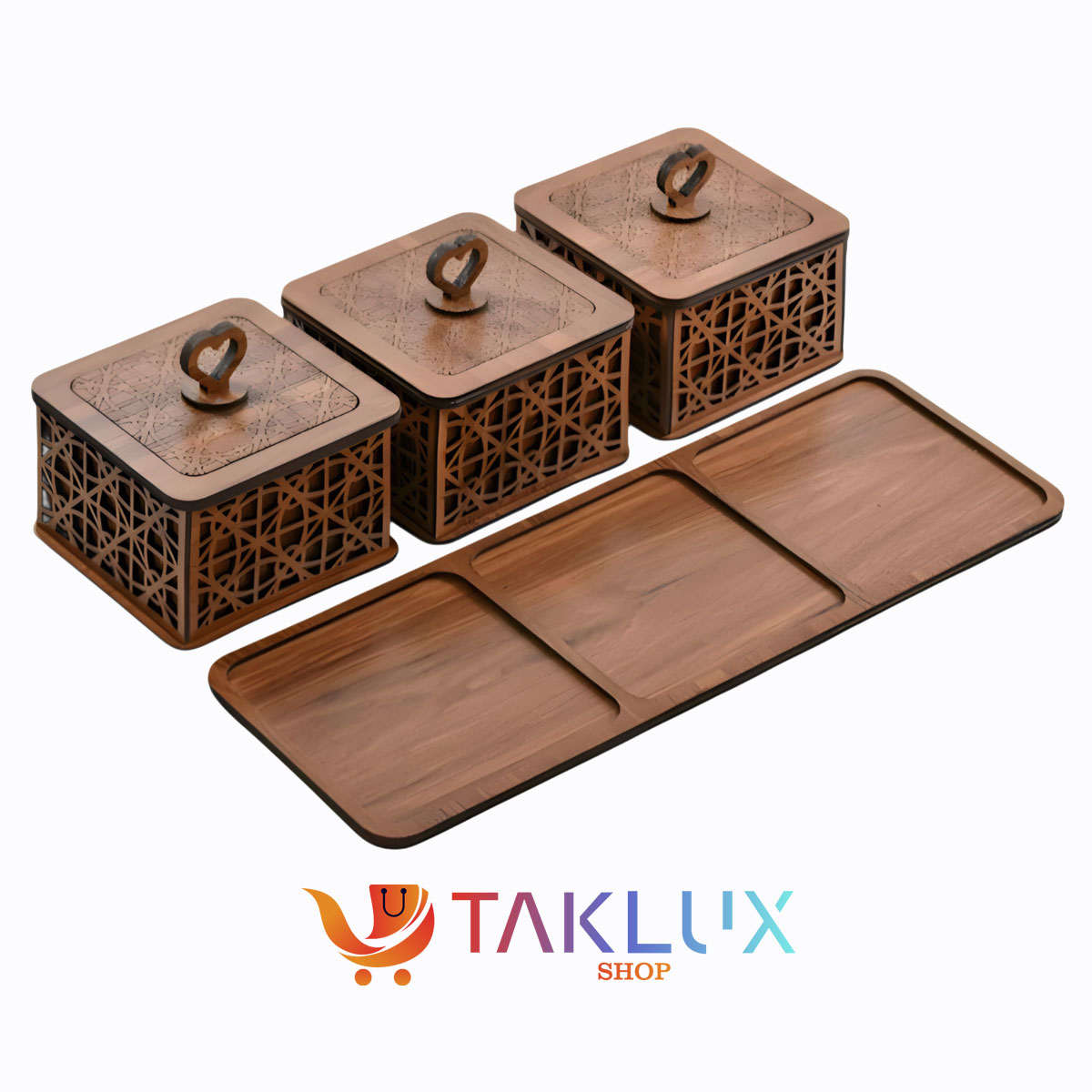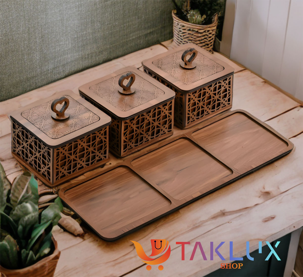 ✨ هر ظرف دارای درب چوبی با دستگیره قلبی‌شکل است که علاوه‌بر زیبایی، استفاده را آسان‌تر می‌کند ❤️
