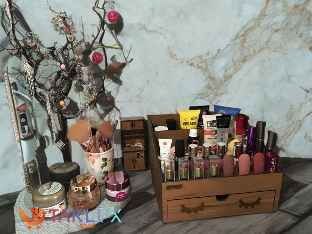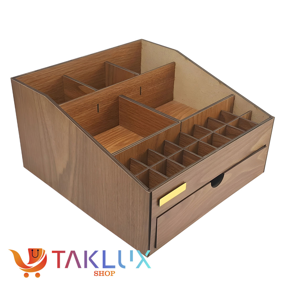 رونیا یک نظمدهنده رومیزی چندمنظوره با طراحی شیک و کمجاست که برای لوازم آرایش، لوازمالتحریر، اکسسوری و ملزومات شخصی عالی است. این استند دارای بخشهای جداشونده برای قرار دادن رژلبها، برسها، لوازم کوچک و یک کشوی جادار برای نگهداری آیتمهای بزرگتر است. ✅ ظاهر چوبی و طبیعی، حسِ لوکس و گرم به میز آرایش یا میز کار میدهد. مناسب برای هدیهدادن 🎁، مرتبسازی میز کار یا مرتب نگهداشتن لوازم آرایشی روزمره. با رونیا هر چیز سرِ جای خودش قرار میگیرد — زیبا، کاربردی و جمع و جور. 💄✏️🪵